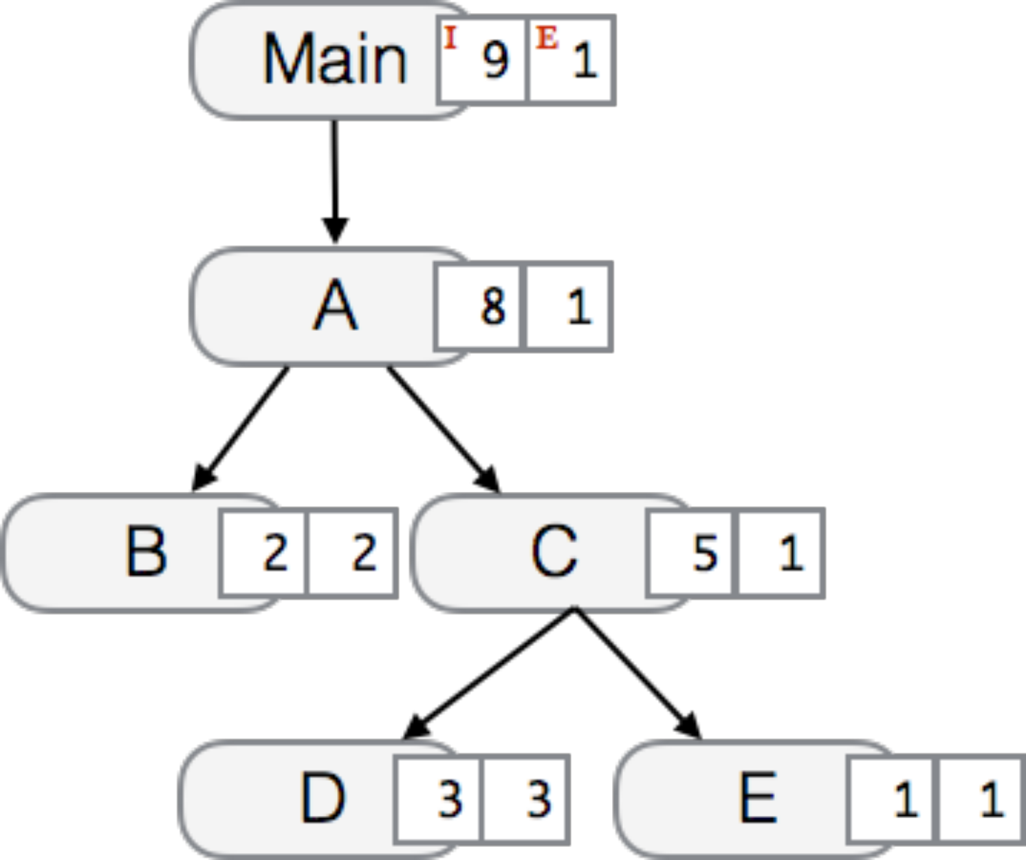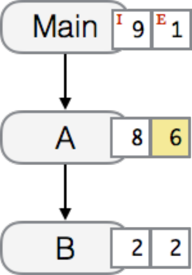 Cincurs nodesDandEto be elided and their exclusive cost is augmented to nodeC.- Self and descendants