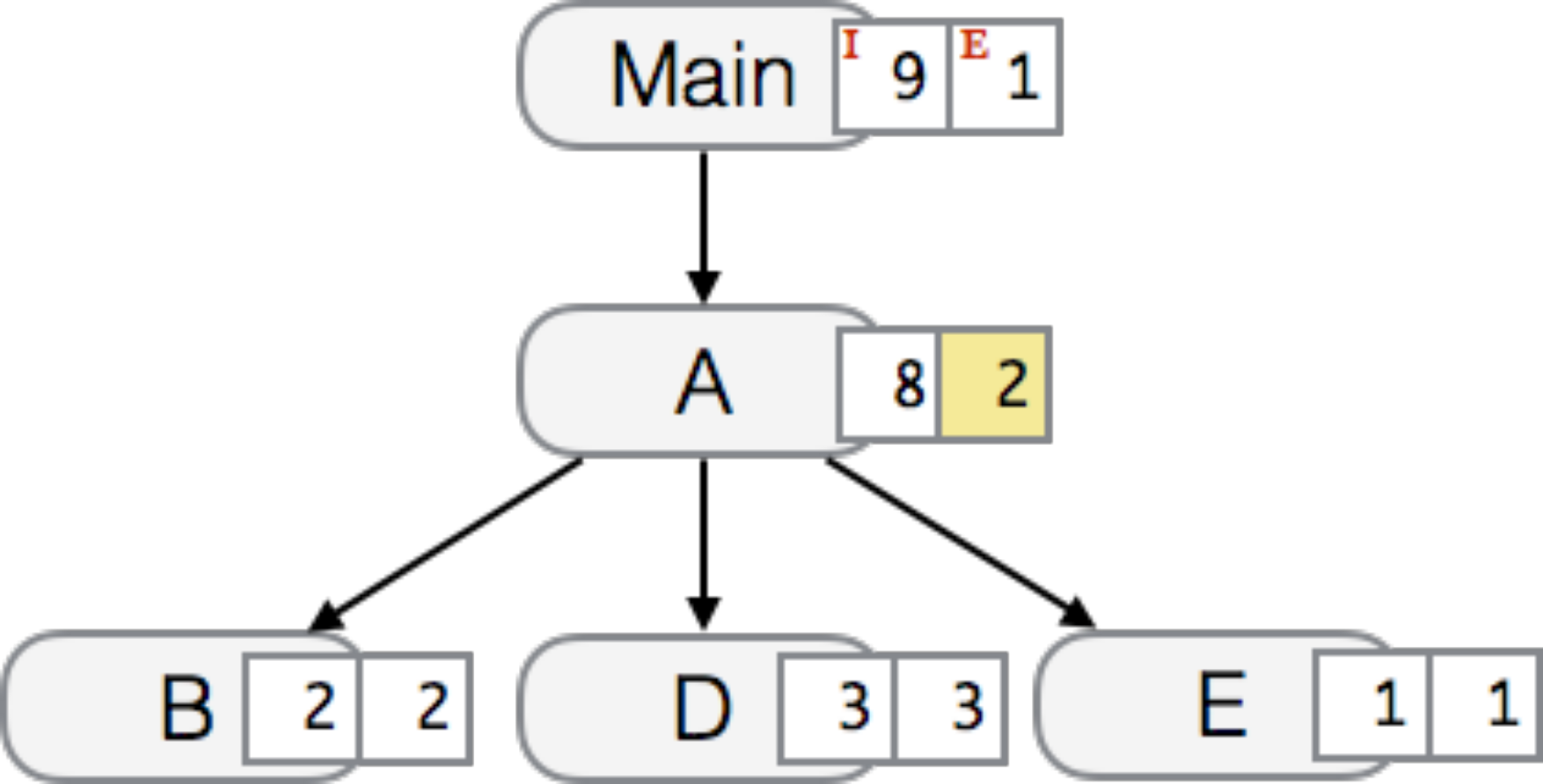 Cwill elide the node and its children (nodesDandE). The total of the exclusive cost of the elided nodes is augmented to the exclusive cost of nodeA.