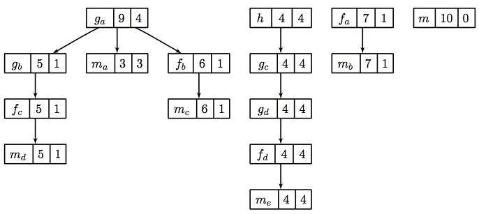 Cof the CCT from Figure 10.10. After filtering, nodeCis elided and its exclusive cost is augmented into the exclusive cost of its parent (nodeA). The children of nodeC(nodesDandE) are now the children of nodeA.- Descendants only